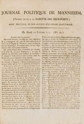 Um die Wende vom 18. zum 19. Jahrhundert bekommt Mannheim die kriegerischen Wirrungen und politischen Änderungen voll und ganz zu spüren. Mehrmals besetzen französische Truppen die Stadt an Rhein und Neckar - und das wirkt sich auch auf das in Mannheim erscheinende Druckwerk aus: Ab 1800 gibt es das französischsprachige "Journal politique de Mannheim". 1803 wird die bis dahin kurpfälzische Stadt badisch. Sechs Jahre später verbietet der Großherzog das Journal - auf der Druck der Franzosen, denen die Berichterstattung missfällt.