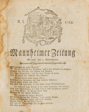 Der erste schriftliche Nachweis über eine Mannheimer Zeitung datiert aus dem Jahr 1680 - ein Ratsprotokoll erwähnt eine "wöchentliche hiesige Zeitung", die bei einem Buchdrucker bestellt wird. Ein Exemplar ist jedoch nicht erhalten geblieben. Am 2. September 1741 - Mannheim ist längst Residenzstadt - erscheint erstmal das "Mannheimer Frag- und Kundschaffts-Blatt", das später in "Mannheimer Frag- und Anzeigs-Blatt" umbenannt wird.