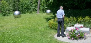 Im Vordergrund: eine Gedenkstätte.