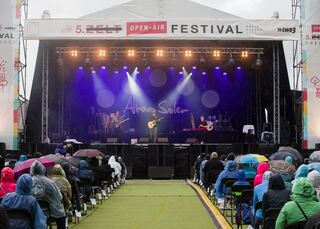 Bei anhaltendem Regen gab der Nachwuchskünstler den Anheizer für Alvaro Soler.