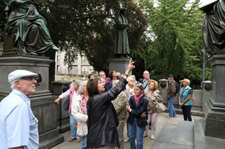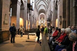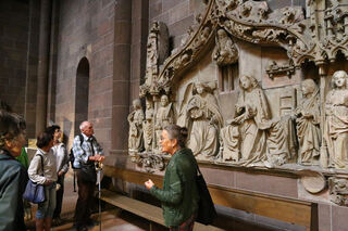 Gästeführerin Eva Maria Schmitt klärt über die einzelnen Baustile auf.