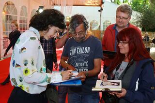 Barbara Auer spielt die Rolle der Tante Martha in Piotr Lewandowskis Film "Jonathan". In Ludiwgshafen stellte sie sich den Fragen der Presse - und erfüllte auch so manchen Autogrammwunsch.