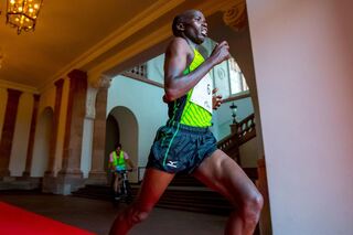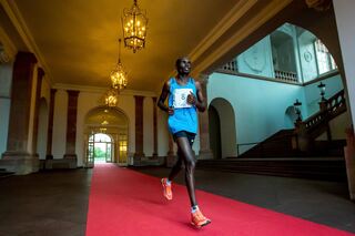 In neuer Rekordzeit von 2:15,54 Stunden hat Edwin Kosgei aus Kenia...