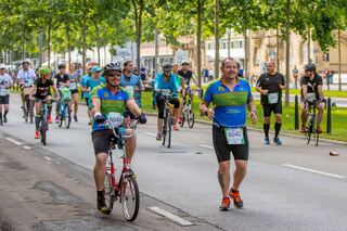 In Zweier-Teams wird die Strecke zusammen absolviert: einer auf dem Fahrrad, einer laufend.