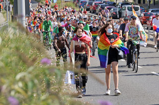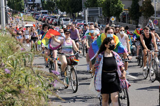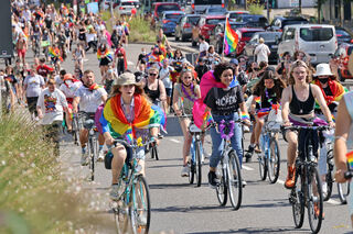 Radelnde CSD-Teilnehmer 2021 in Mannheim.