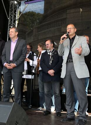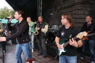 Die Peter Maffay Fake Band auf der Bühne am Wasserturm.