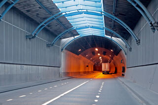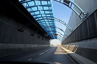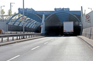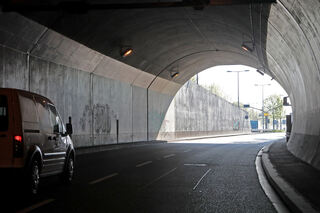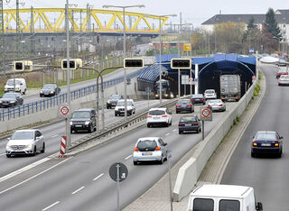 Blick zur Westausfahrt Heute rauschen durch die vierspurige unterirdische Straße gut 60 000 Autos täglich – doppelt soviele als vor 25 Jahren. Bild: Blüthner