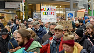 Der Demonstrationszug zieht am Samstag durch Mannheim.