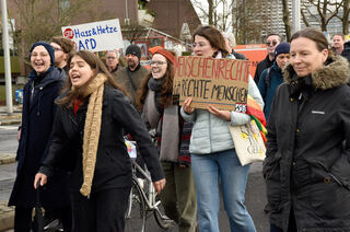 Knapp 30 Organisationen und Gruppen bewiesen am Samstagmorgen trotz anhaltendem Regen auf den Planken, am Paradeplatz, in der Breiten Straße und im Jungbusch Standfestigkeit gegen Rechts.