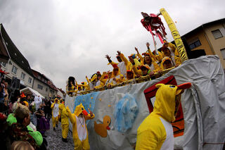 Am Rosenmontag platzt das Dorf aus allen Nähten. Spass uff de Gass wohin man schaut.