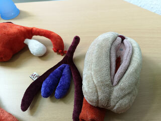Auch eine Vagina als Stofftier hat die Sozialpädagogin als Unterrichtsmaterial.