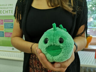 Plüschig aber im echten Leben gefährlich: Mit dem Kuscheltier namens Chlamydia erklärt El-Haji, wie Geschlechtskrankheiten übertragen werden und wie man sich schützen kann.