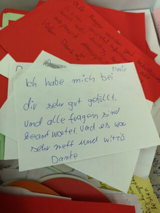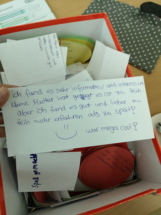 Die Feedback-Box: Die Schüler sind durchweg begeistert vom Unterricht. "Lieber zu früh mehr erfahren als zu spät", findet eine Schülerin und gibt dem Konzept damit recht.