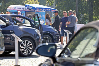 In den Planken reihen sich immer mal wieder Fahrzeuge der verschiedenen Autohäuser auf, die man bestaunen...