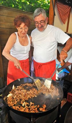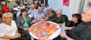 Auerbach; Bachgassenfest 2015; Original Bluetenweg-Jazzer mit Malerin Joana Nagy-Blohberger; Bild: Dietmar Funck