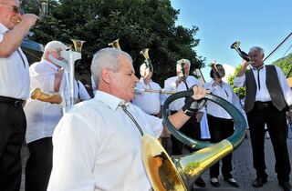 Auerbach; Bachgassenfest 2015; Jagdhornblaeser; Bild: Dietmar Funck