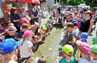 Auerbach; Bachgassenfest 2015; Abkuehlung im Bach...; Bild: Dietmar Funck