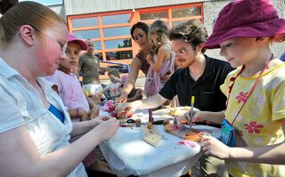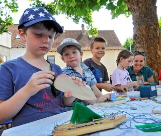 Auerbach; Bachgassenfest 2015; Kinder bemalen Boote fuer die Bachregatta; Bild: Dietmar Funck