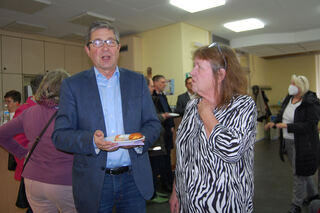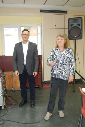 Baubürgermeister Ralf Eisenhauer und Bürgervereinsvorsitzende Gudrun Müller sprachen zur Eröffnung des rundum erneuerten Bürgerhauses in der Gartenstadt.