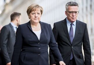 Bundeskanzlerin Angela Merkel (CDU) kam neben Bundesinnenminister Thomas de Maiziere (CDU) zur Totenmesse für Helmut Kohl...