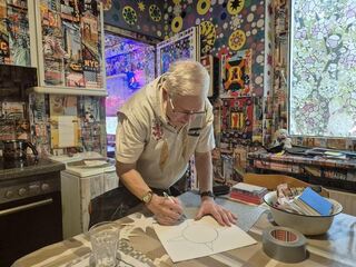 Hier erläutert der Hobbykünstler einige seiner Werke.