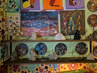 Auf diesem Regal stehen einige der ersten Kunstwerke des 84-Jährigen.