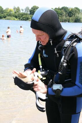 ...und Taucher auf die Unterwasserwelt: Michael Keil (links) und Karlheinz Correll.