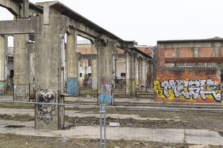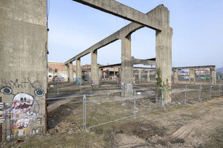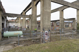 Nur noch Betonstelen erinnern an die großen Werkstatthallen, die hier standen.