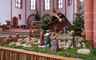 Einfach nur großartig, die vom Mannheimer Schnitzer Walter Ohlhäuser 1956 mitsamt einer Elefantenfigur angefertigte Krippe der Weinheimer Marienkirche.