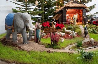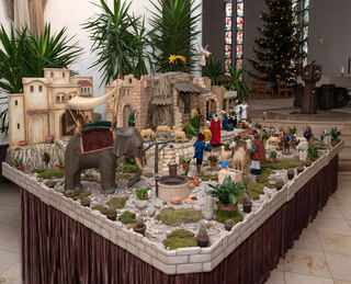 Diese Bethlehem-Darstellung mit einem prächtigen Elefanten ist der Blickfang in der Kirche Heilige Dreifaltigkeit zu Wiesloch.