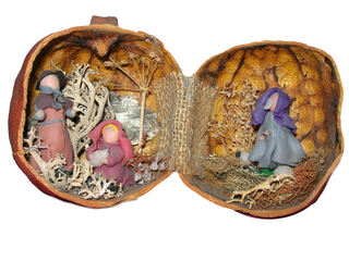 Filigran: Eine Reisekrippe in einem getrockneten Granatapfel aus dem Privatbesitz von Maya Huber, Heidelberg.