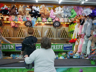 Ein Spaß vor allem für die Jüngsten: Das Dosenwerfen beim Fischerfest 2024 in Ilvesheim.