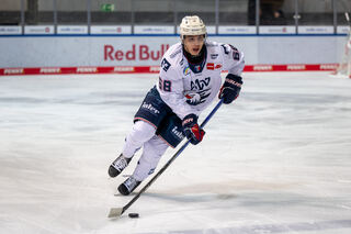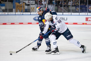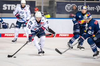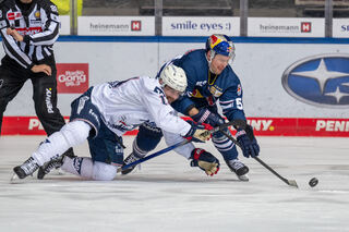 Mannheims Jordan Szwarz gegen Patrick Hager vom EHC München