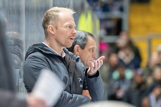 Adler-Cheftrainer Johan Lundskog auf der Bank bei der Auswärtsniederlage gegen den EHC München
