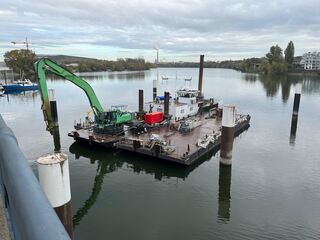 Auch zwei Taucher sind im Einsatz, um die Bergungsarbeiten zu unterstützen