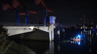 Einsatzkräfte waren in der Nach zum Donnerstag an der Brücke am Mannheimer Binnenhafen vor Ort.