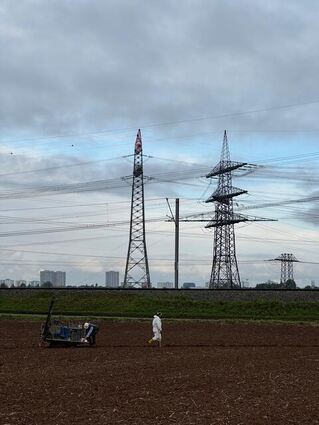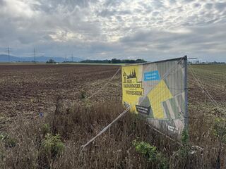 Eine Bürgerinitiative gegen das Umspannwerk hat mit Schildern das Areal der geplanten Anlage markiert.