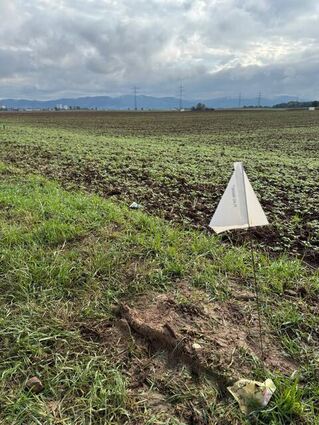 Die Spuren der Maschine sind deutlich zu sehen.