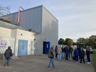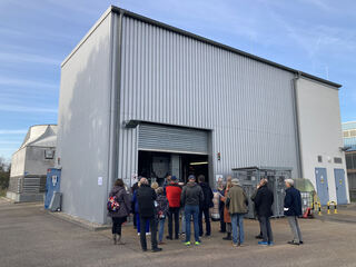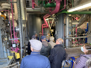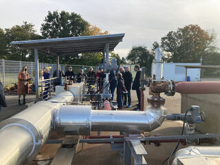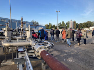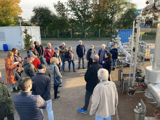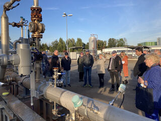 Gemeinsam mit dem Landtagsmitglied Dr. Andre Baumann besuchen Kritiker und Befürworter der Geothermie die Anlage in Bruchsal.