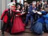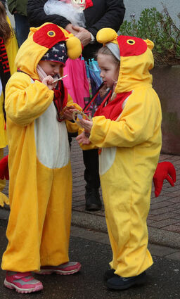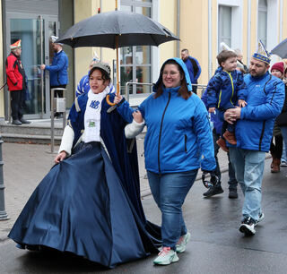 Ob das Wetter wohl hält? Julia II. (link) und Nele I. auf dem Weg zum Rathaus.