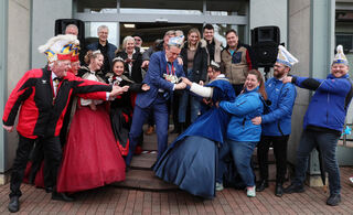 Die Narren herrschen über Brühl: Die "Kollerkrotten" und die "Göggel" erobern beim Rathaussturm den beliebten Schlüssel.