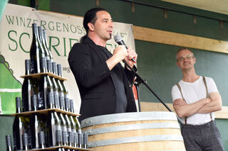 Bülent Ceylan und Manuel Bretschi stoßen mit dem "Bülent Blanc" an.