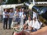 Die Weinhoheiten Fabienne Röger, Sofia Hartmann und Lena Meyer mit Bülent.