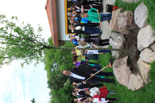 Oktober 2015, Bürgermeister Hoffmann und die Altlußheimer Kerweborscht bei der Einweihung des Kreisels in der Altlußheimer Straße. Bild: Lenhardt