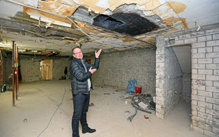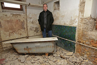 Der Januar 2015 sieht Bürgermeister Gunther Hoffmann in der Alten Schule, die trocken gelegt werden muss. Bild: Lenhardt