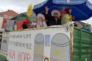 Als Grabträger kamen die "Freunde der Nacht" daher, und der KV Knibbeldick hatte tatsächlich das Umzugsmotto rund um Biogasanlage und Champignonzucht auf seinem Motivwagen verewigt.