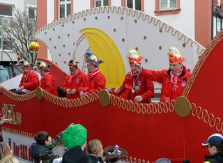 Vom Narrenschiff des SKK flogen... Eis am Stiel auf das Publikum hernieder.