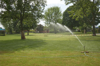 Rund um die Schwimmbecken brummen die Rasenmäher vorbei.