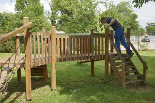 Bauhof-Mitarbeiter überprüfen die Spielgeräte.