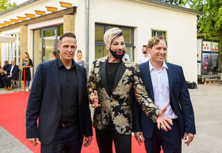 Harald Glööckler mit den beiden Lizenznehmern Bernd und Jochen Frey.